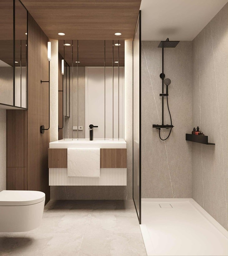 Łazienka jest przestrzenią, w której zaczynamy i kończymy dzień, zatem pomieszczenie to zasługuje na wyjątkową uwagę. „Zarówno w domu, jak i w hotelu, staje się miejscem regeneracji, relaksu oraz codziennych rytuałów. Coraz częściej przybiera formę pokoju kąpielowego, przypominającego prywatne spa.” – zauważa architektka Iga Sawicka. Kojąca atmosfera powstaje dzięki harmonijnej aranżacji – spokojnej kolorystyce, miękkiemu, nastrojowemu oświetleniu oraz starannie dobranym dodatkom. Duże lustra oraz szafki łączą funkcje estetyczne z praktycznymi, zapewniając wygodę i funkcjonalność użytkowania.