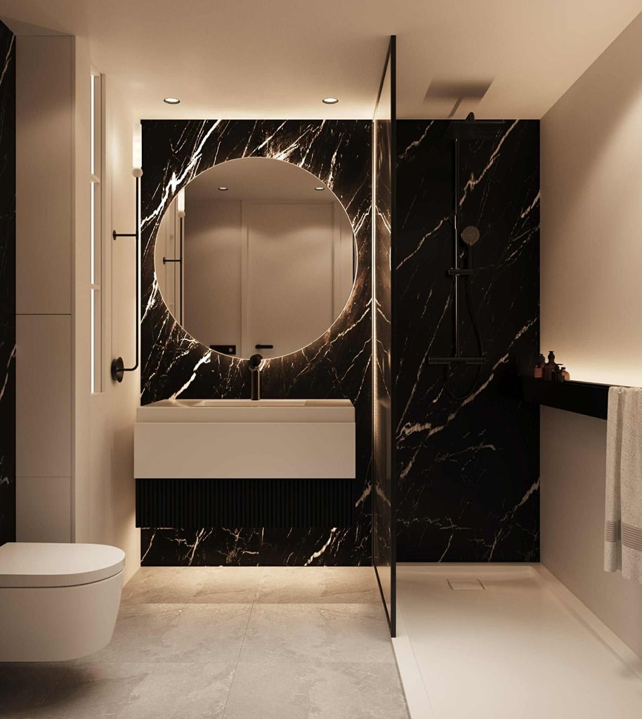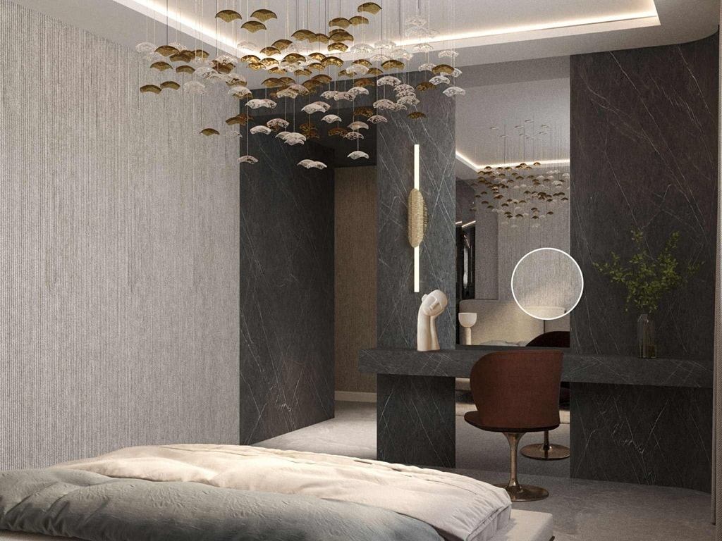 Oświetlenie to nie tylko wygoda użytkowania, ale przede wszystkim atmosfera pomieszczenia. Zatem jego rodzaj i barwa powinien współgrać z estetyką pomieszczenia, podkreślając jego zalety. „Kluczowe jest stworzenie odpowiednich scen świetlnych w zależności od potrzeby użytkownika: pracy, relaksu, przygotowań do wyjścia czy spotkania.” – podkreśla Iga Sawicka, architektka pracowni SAAN Architekci. Należy zatem zwrócić uwagę na odpowiednie rozmieszczenia oświetlania, które ma wspomagać w codziennej rutynie: oprawy do czytania, praktyczne oświetlenia przy toaletkach i w łazience.