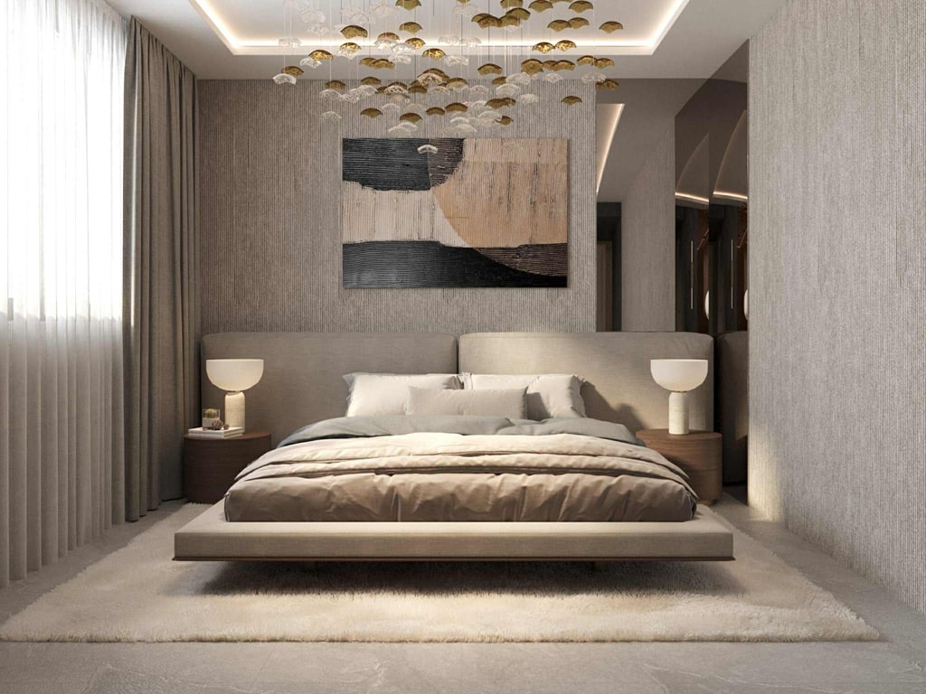 „Jasna, stonowana kolorystyka nadaje przestrzeni lekkości, tworząc relaksacyjną strefę zen.” – mówi architektka Iga Sawicka. Zastosowanie subtelnej palety barw w zestawieniu z naturalnymi materiałami, wprowadzają kojącą atmosferę, tworzącą miejsce doskonałe miejsce do odpoczynku. Warto również spotęgować ten efekt wprowadzając dodatki w postaci roślin czy dzieł sztuki. Wrażenie wyjątkowości, charakteru i luksusu dodatkowo wprowadzają wysokiej jakości materiały wykończeniowe i meble.