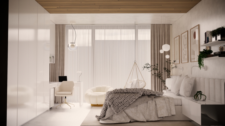 Sypialnia w beżowych odcieniach