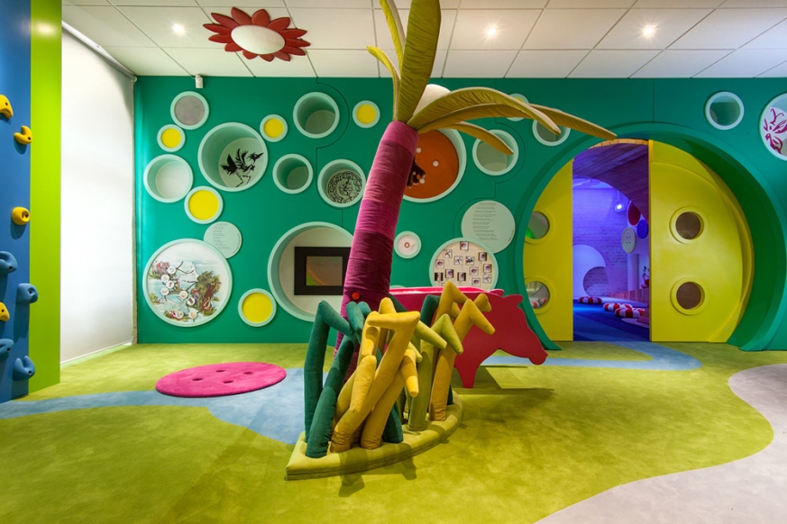 Cztery kazamaty wydzielają poszczególne strefy: zabawy, pokazową oraz doświadczalną. Pierwsza strefa, w której dzieci bawią się pod okiem rodziców podzielona jest na dwie części – jedną o charakterze sali zabaw z miękką posadzką, wyposażoną w zabawy multimedialne, drugą z atrakcjami wodnymi. Kolejne dwie kazamaty to przestrzeń gdzie odbywają się warsztaty lub okazjonalne spotkania.