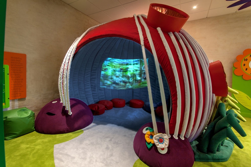 Cztery kazamaty wydzielają poszczególne strefy: zabawy, pokazową oraz doświadczalną. Pierwsza strefa, w której dzieci bawią się pod okiem rodziców podzielona jest na dwie części – jedną o charakterze sali zabaw z miękką posadzką, wyposażoną w zabawy multimedialne, drugą z atrakcjami wodnymi. Kolejne dwie kazamaty to przestrzeń gdzie odbywają się warsztaty lub okazjonalne spotkania.