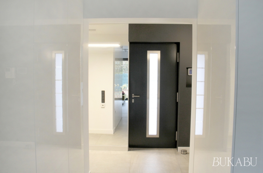 Projekt jest nowoczesny, baza kolorystyczna to biel, szarość i antracyt przełamane mocnymi akcentami kolorystycznymi.