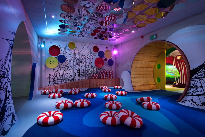 Poszczególne sale swoją nazwą i scenografią nawiązują do słynnej Akademii Pana Kleksa. Mamy kolorowy świat Bajdocji, klimatyczną podwodną Abecję, Krainę sennych lusterek na granicy snu i jawy oraz „piegowatą” Kuchnię Pana Kleksa.
