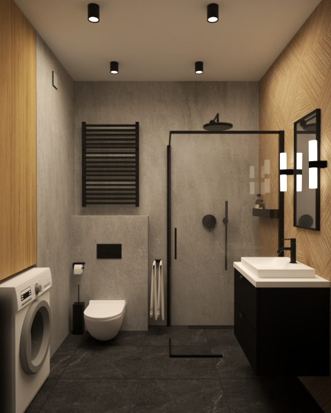 Mieszkanie - projekt łazienki z czarnymi dodatkami