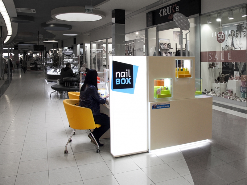 Naszym zadaniem było opracowanie spójnej koncepcji sieci stoisk manicure (w formie wyspy) z możliwością ustawiania ich w dowolnej konfiguracji w galeriach handlowych.